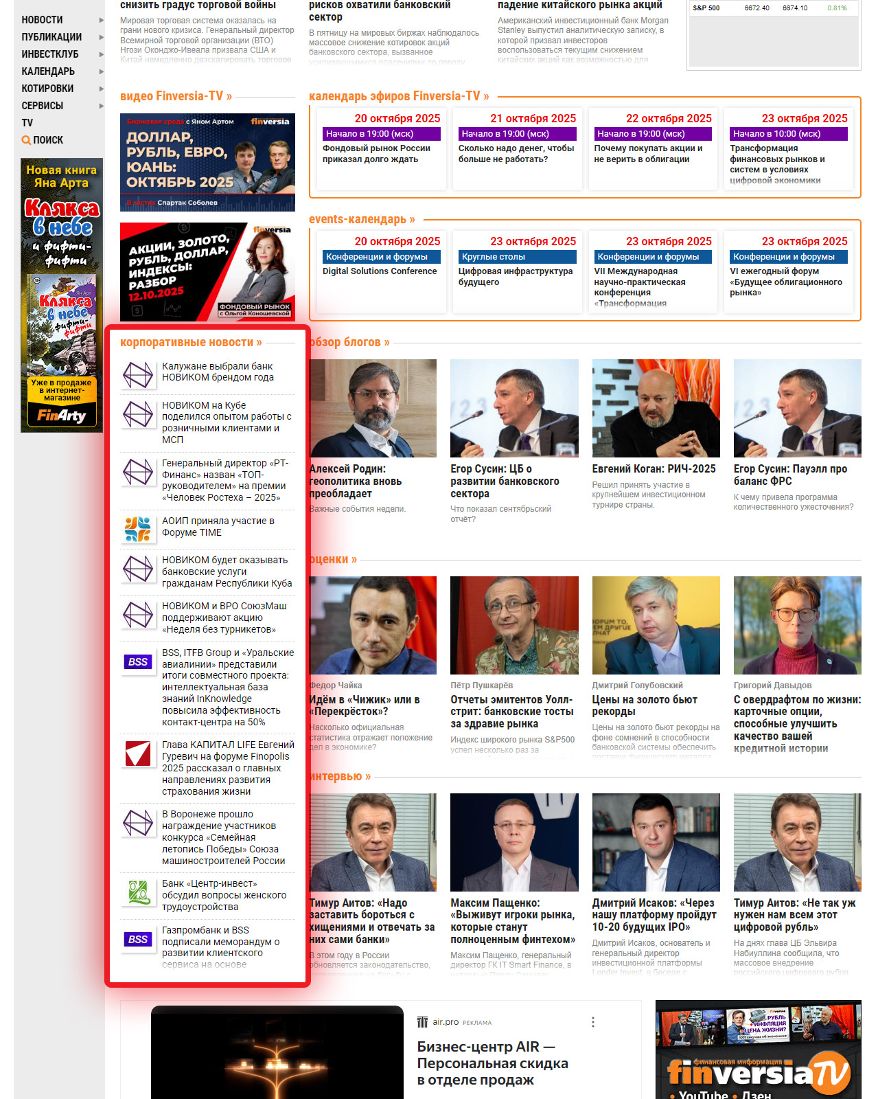 Портал Finversia предлагает широкий спектр рекламных и PR возможностей по созданию и публикации текстовых материалов. На выбор – несколько форматов: от небольших релизов до профессиональных интервью и статей, включающих видеоконтент. Наша основная аудитория – инвесторы, вкладчики, трейдеры, специалисты фондового рынка, банкинга и финансовой индустрии. В Finversia выступают ведущие эксперты финансового рынка, экономисты и аналитики, представители органов власти и регулирования, руководители профессиональных объединений финансового рынка, банков и компаний.