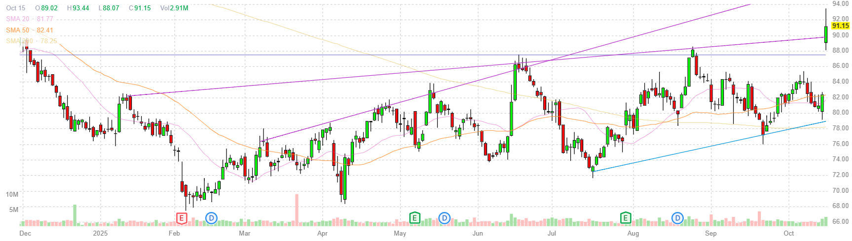 Дополнительным драйвером роста стал обновлённый годовой прогноз компании. Bunge ожидает прибыль в диапазоне $7,30–7,60 на акцию на скорректированной основе, что выше консенсус-прогноза FactSet ($7,39). Прогноз учитывает слияние с Viterra — крупным переработчиком зерна и масличных культур — и оказался лучше, чем ожидали участники рынка.