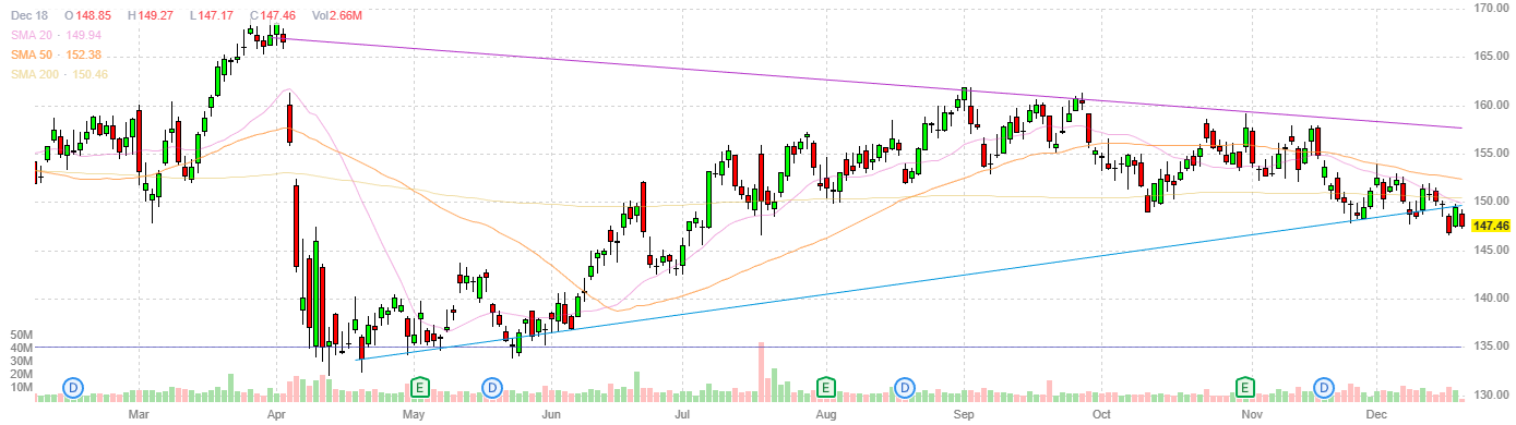Hа момент подготовки материала акции CVX котировались по $147,46 (−1,37%).