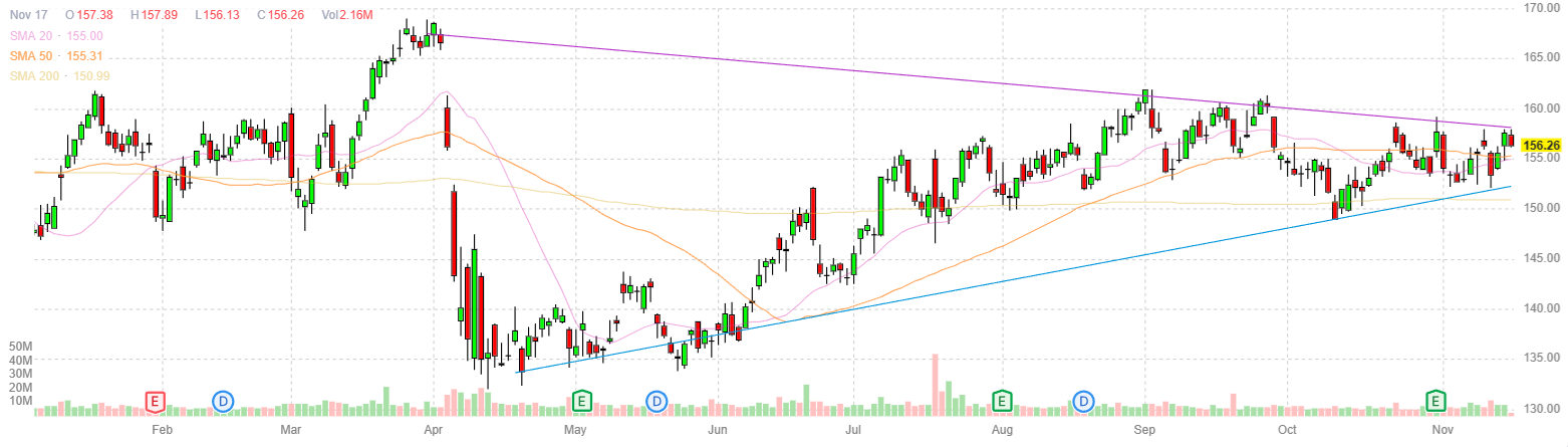 Hа момент подготовки материала акции CVX котировались по $156,26 (-0,86%)