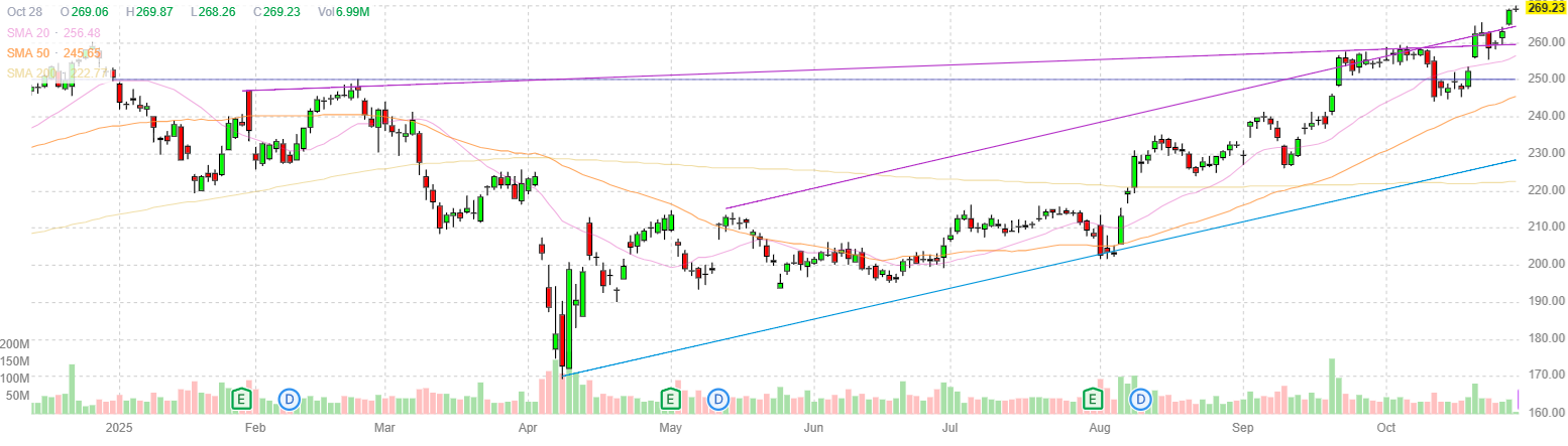 По оценке JPMorgan, акции Apple «входят в сезон отчётности с наибольшим позитивным фоном за последний год». Аналитик Самик Чаттерджи повысил целевую цену до $290 за акцию. Компания также усилила позиции в торговой политике США, перенаправив цепочки поставок из Китая в Индию и Вьетнам и увеличив внутренние инвестиции.