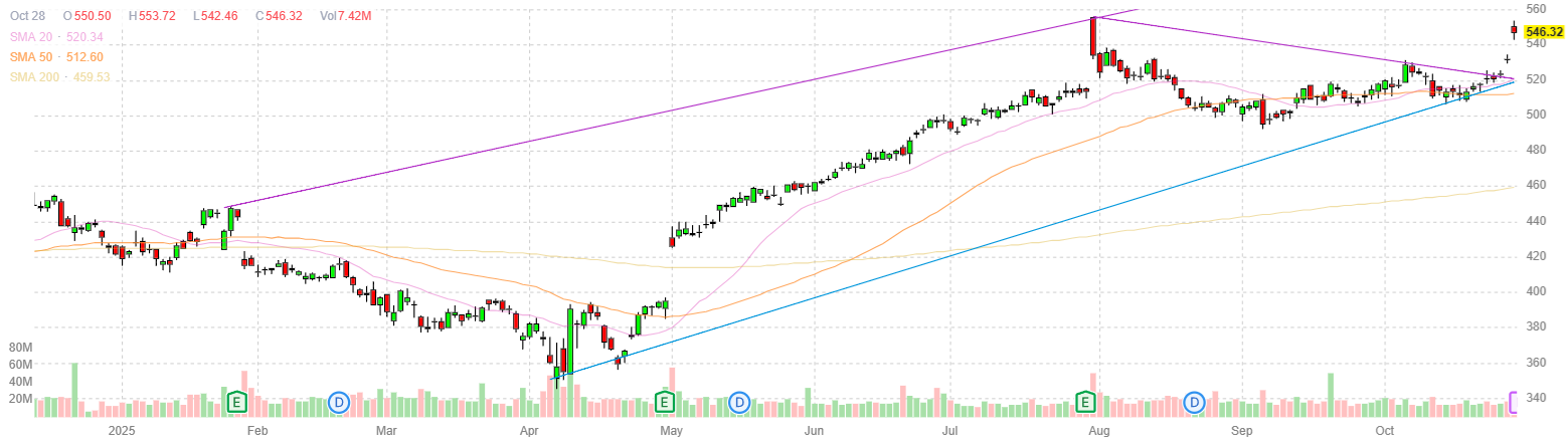 На момент подготовки материала акции MSFT котировались по $546,32 (+2,78%), а AAPL — $269,23 (+0,16%).