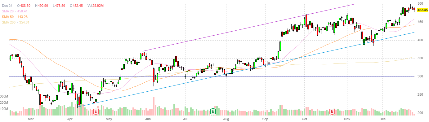 Hа момент подготовки материала акции TSLA котировались по $482,45 (−0,64%).
