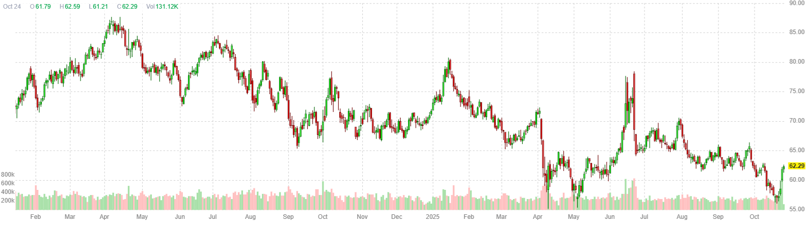 В четверг США объявили ограничения против «Роснефти» и «Лукойла», которые вместе обеспечивают более 5% мирового объёма добычи. Санкции направлены на давление на президента России Владимира Путина с целью прекращения конфликта в Украине.