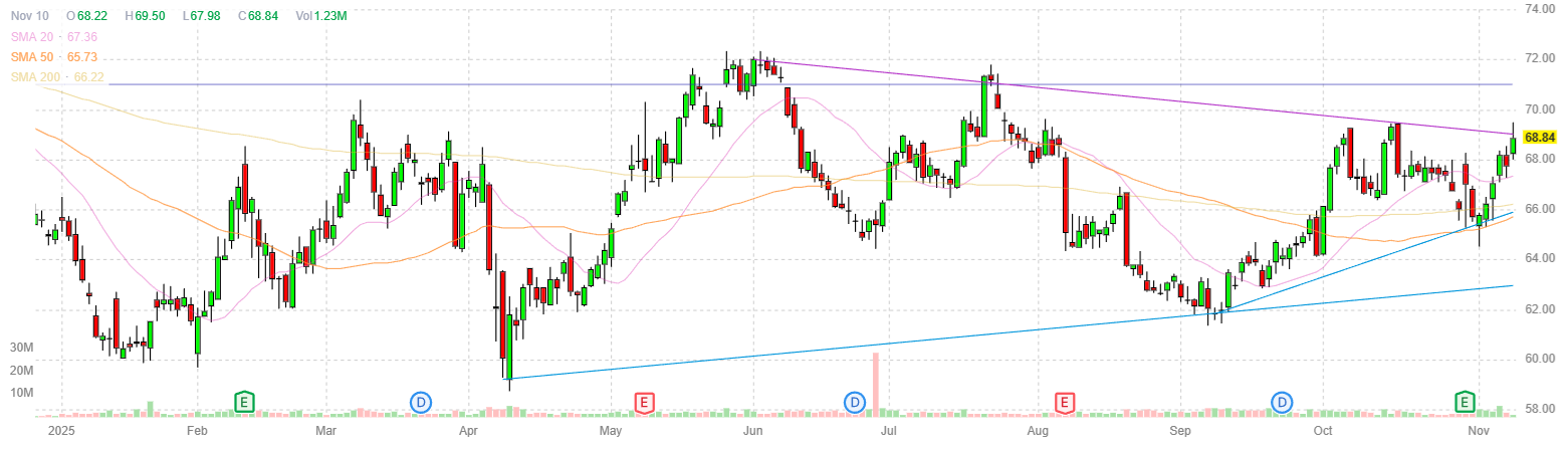 Hа момент подготовки материала акции QSR котировались по $68,86 (+1,62%).
