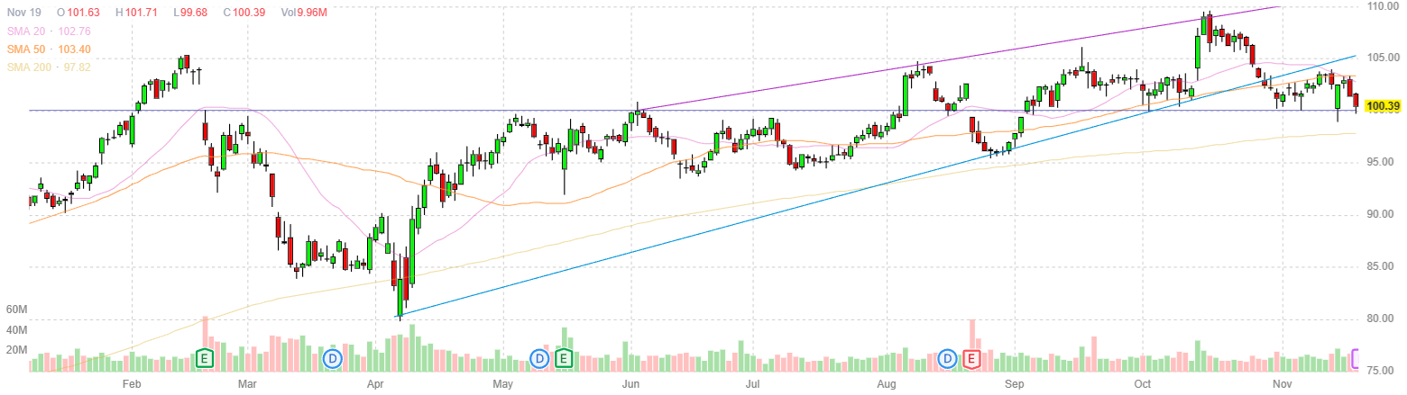 Hа момент подготовки материала акции WMT котировались по $100,39 (−0.99%)