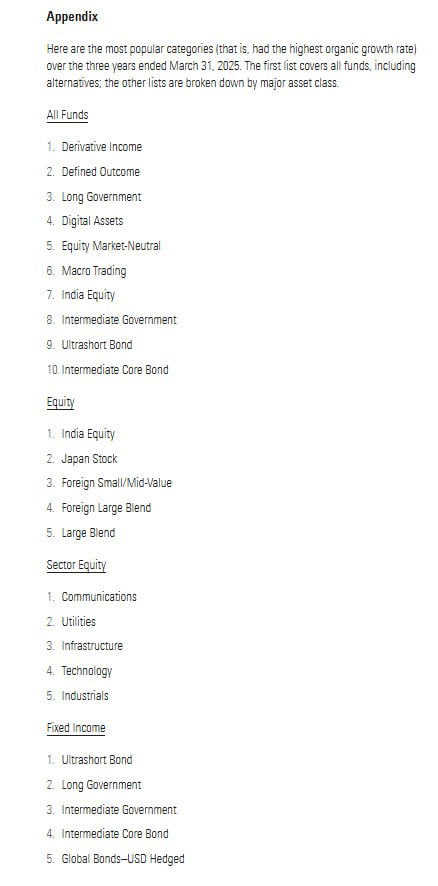 Какой бы ни была причина, инвесторам при выборе фондов рекомендуется сосредоточиться на более долговечных атрибутах, таких как соответствие портфелю их профилям риска, потенциал диверсификации, издержки по управлению, налоговая эффективность. Те, кто более склонен к авантюрам, могут рассмотреть возможность использовать стратегию «Покупай нелюбимое». Для облегчения выбора на рис.3 приводятся самые популярные стратегии фондов за последние 3 года.