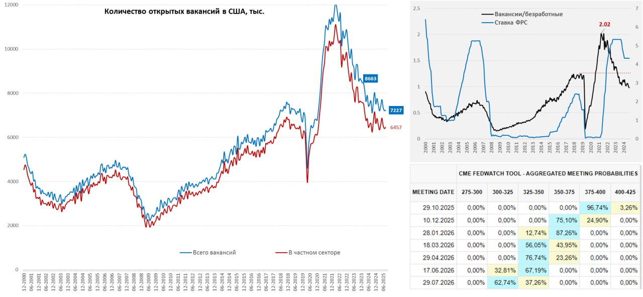 Вакансий меньше не стало - они даже немного подросли до 7.23 млн (показатель достаточно стабилен в последний год), при количестве безработных при количестве безработных 7.38 млн, соотношение вакансий и безработных 0.98 - ниже предковидных максимумов, но исторически все еще достаточно высоко.