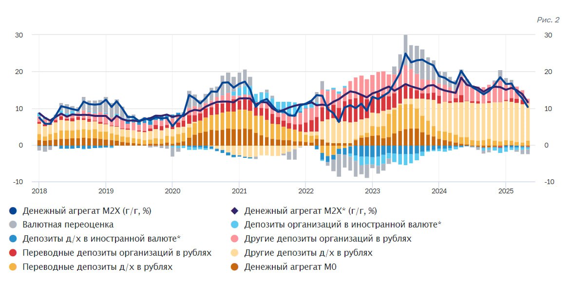 Если смотреть динамику - то денежная масса М2 с начала года выросла всего на 0.2%, что полностью соответствует траектории роста М2 в 2016-2019 годах, когда инфляция находилась вблизи целей Банка России.