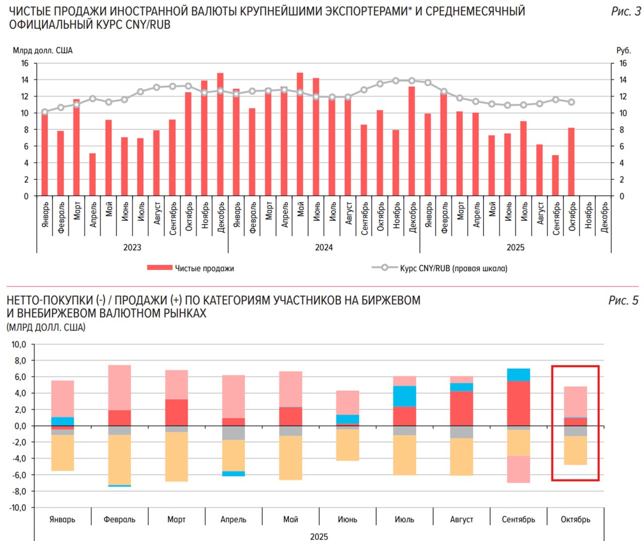 В целом структура чистых покупок/продаж валюты на рынке вернулась к тому, что было в первой половине года, когда нефинансовые компании выступали чистыми покупателями валюты, а банки-нерезиденты были продавцами, экспортеры нарастили продажи под налоги.