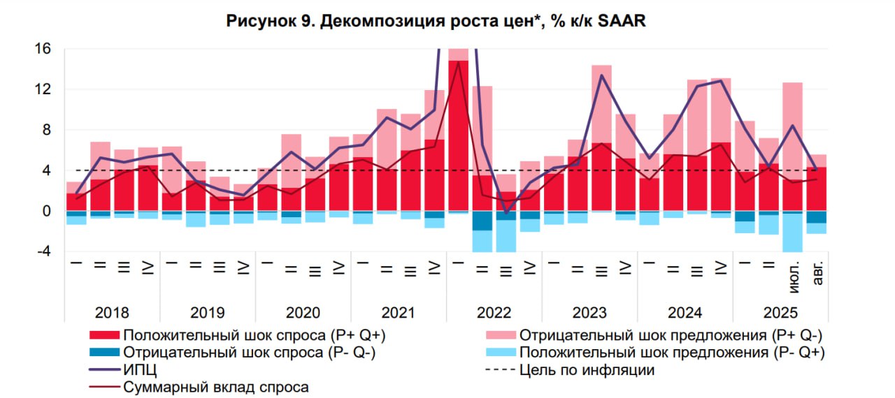 "агрегированный внешний спрос на товары российского экспорта снизился... что касается агрегированного внутреннего спроса, то он продолжает расти ... достижение цели по потребительской инфляции, вероятно, произойдет при более низких темпах роста ВВП"