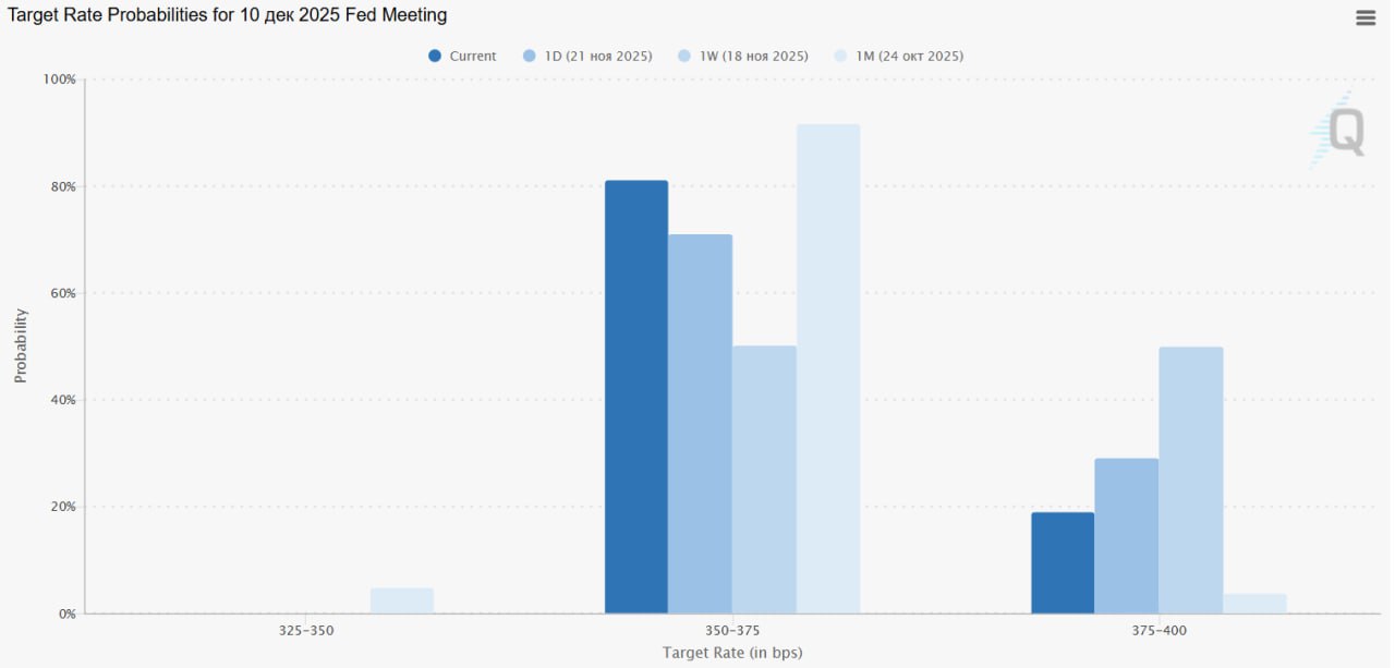 После этого вероятность снижения ставки в декабре стала оцениваться рынком в 81%, но интрига сохраняется, т.к. сам Пауэлл молчит как партизан. Исторически так сложилось, что позиция Уильямса оказывала на главу ФРС доминирующее влияние, при этом сам глава ФРБ Нью-Йорка скорее заядлый "голубь", сейчас Пауэллу нужно как-то сбалансировать позиции внутри.