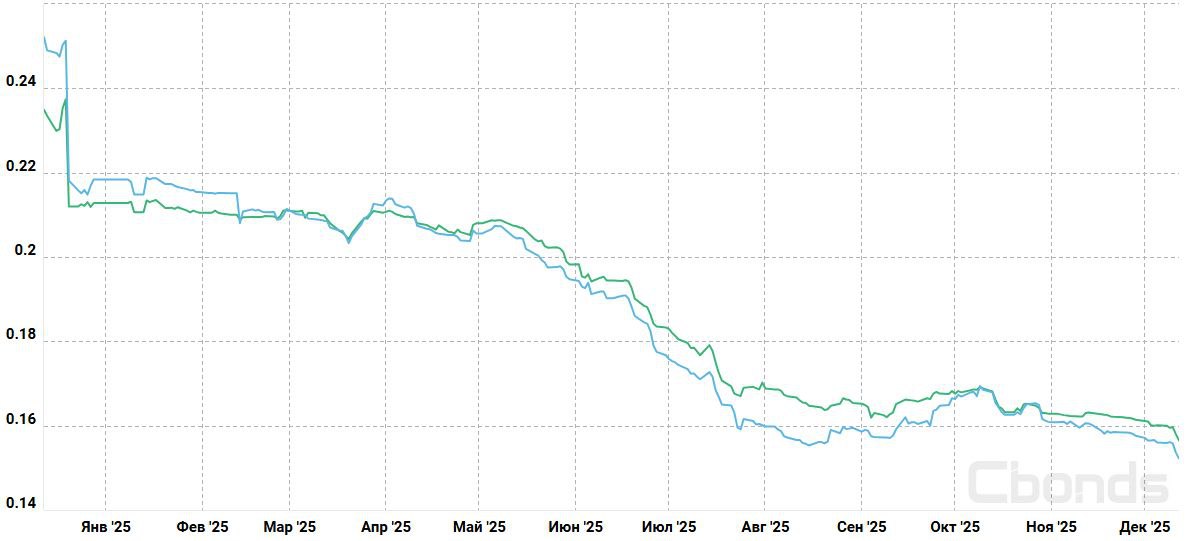 Осталось меньше недели до заседания по ставке, рыночные свопы в последние дни резко скорректировались до 15.65% за три месяца, предполагая скорее -100 б.п. на ближайшем заседании паузу в феврале. Рынок пошел за данными по инфляции, реагируя на ее снижение, консенсус экономистов чуть активнее дрейфует в сторону -100 б.п. после данных по инфляции.