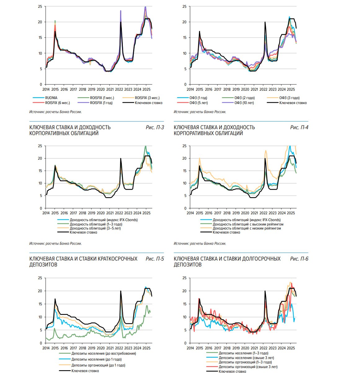 По оценкам Банка России, в 2019–2025 годах свыше 80% изменения доходности ОФЗ переносилось в ставки по долгосрочным депозитам в течение 3 месяцев, а по краткосрочным депозитам – в течение 1 месяца (в 2013–2018 годах для этого требовалось 6–7 месяцев).