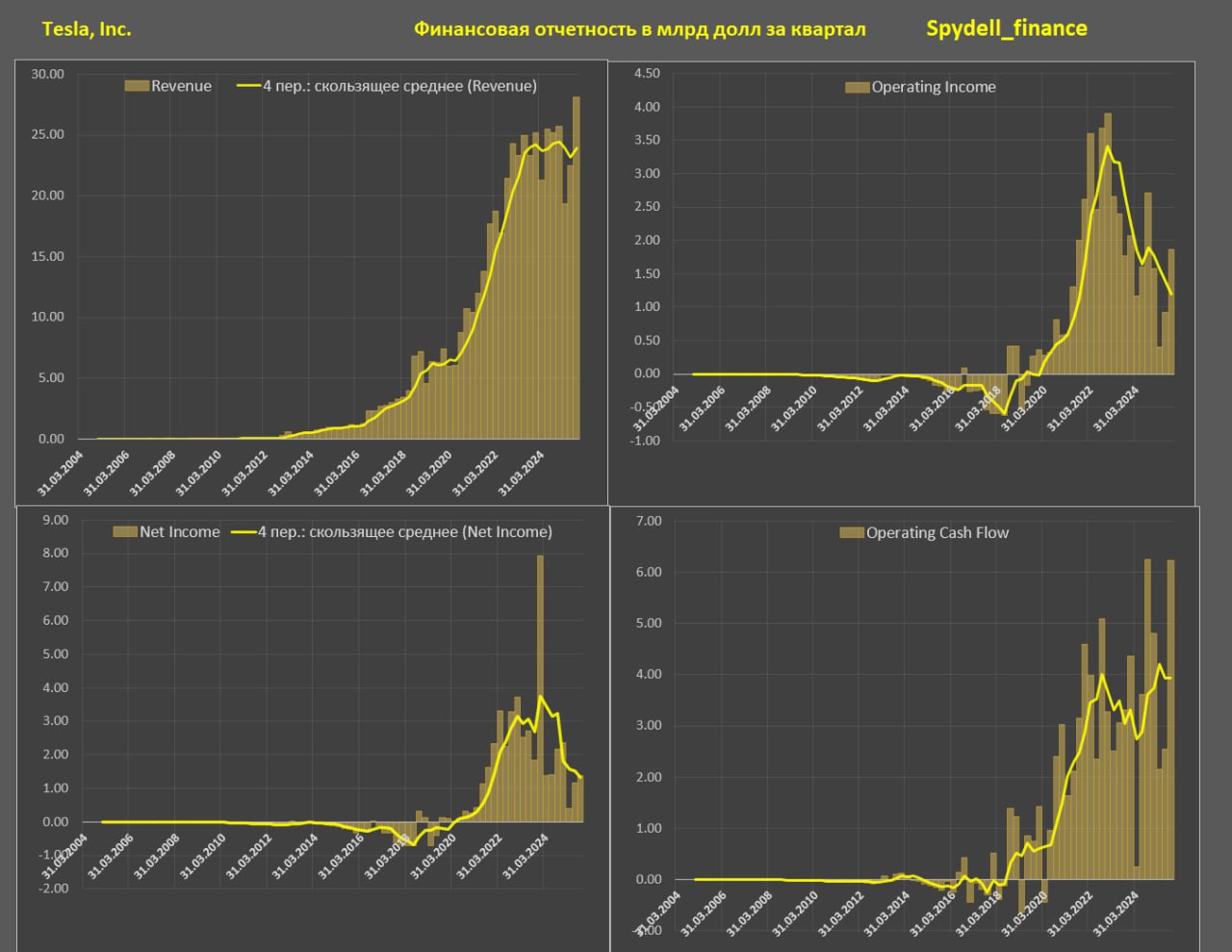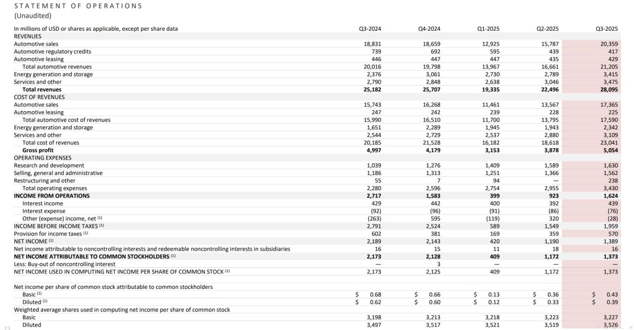 Валовая прибыль автомобильного подразделения сократилась с 20.3 млрд за 12м в конце 2022 до 12 млрд к 3кв25, тогда как энергетический сегмент нарастил валовую прибыль с нуля до 3.5 млрд.