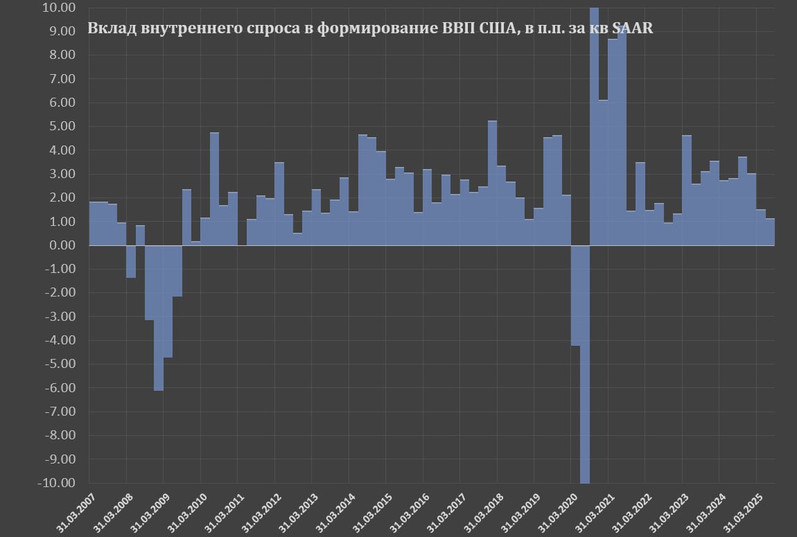 «Рост» экономики целиком и полностью обусловлен техническим моментом – стабилизацией импорта после рекордных опережающих покупок в 1кв25 на опасении масштабных тарифов.
