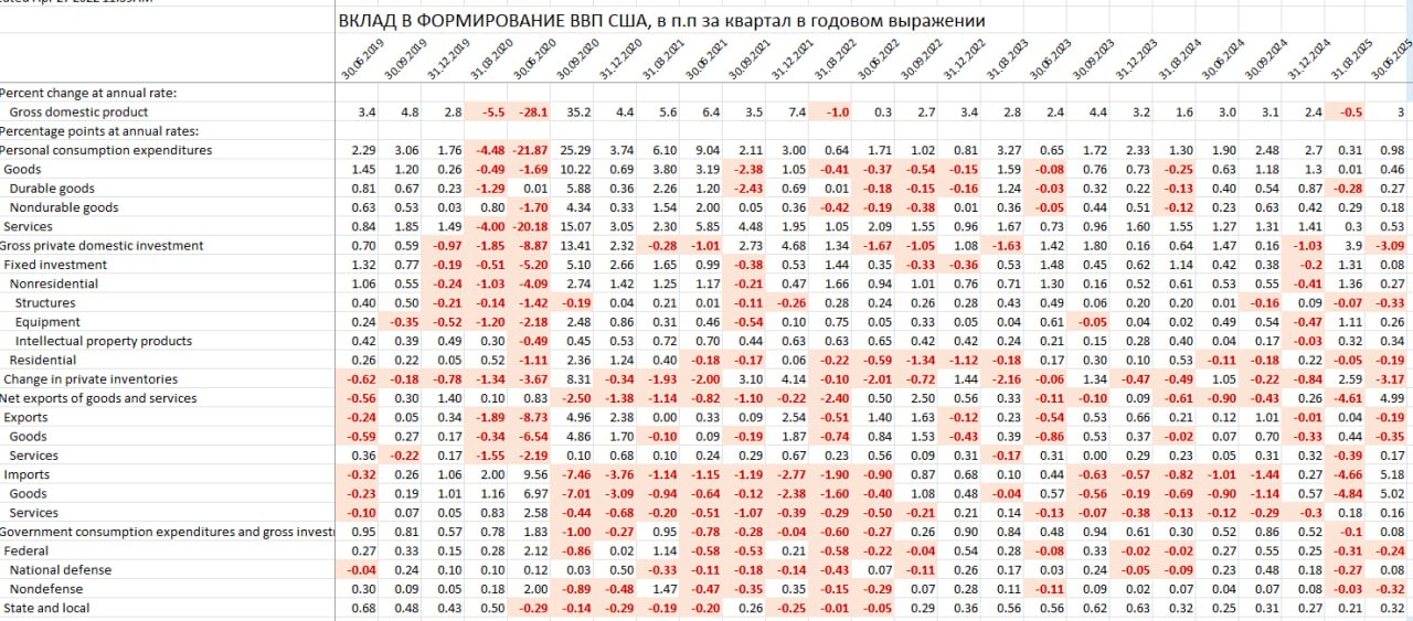 Среднесрочная норма эффекта внешней торговли составляет ровно 0.0 п.п (так было в 2017-2019), когда Трампу еще не снесло крышу и именно столько же (0.0 п.п) было в 2022-2024, при этом квартальная динамика крайне волатильна.