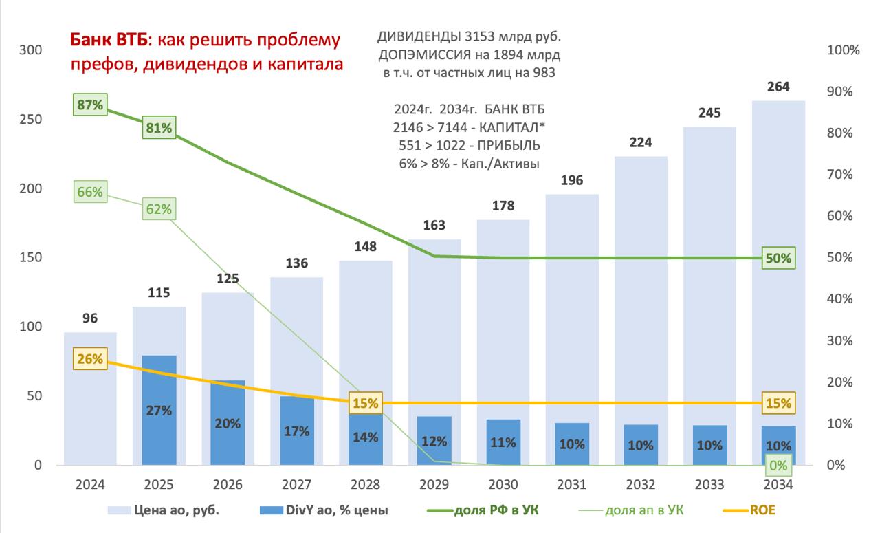 У меня есть решение, как сделать инвестиционную идею в акциях ВТБ фундаментально обоснованной, решить проблему префов и достаточности капитала банка. Ниже подробности, а в комментариях - расчетный файл с вариантами.