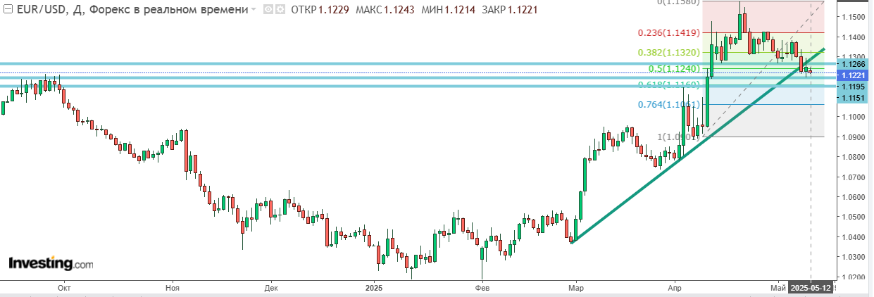 Жаль, глава ФРС Джером Пауэлл с его «кардиналами» не успели порадоваться. Лишь накануне, 7 мая на рисках инфляции из-за «тарифных войн» вынесли вердикт о жёсткой политике и сохранении высоких ставок.