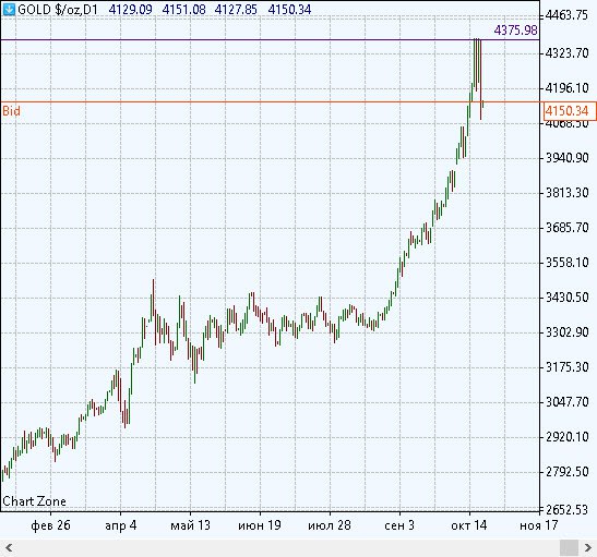 Экстраординарная ситуация, сформировавшаяся на рынке драгметаллов в последние пару недель, предсказуемо закончилась флеш-крашем, последовавшим после того, как на прошлой неделе цена золота, стартовав из районе $4000 за тройскую унцию, прибавила к внутринедельному максимуму, достигнутому в четверг, 15 октября, почти 10%.