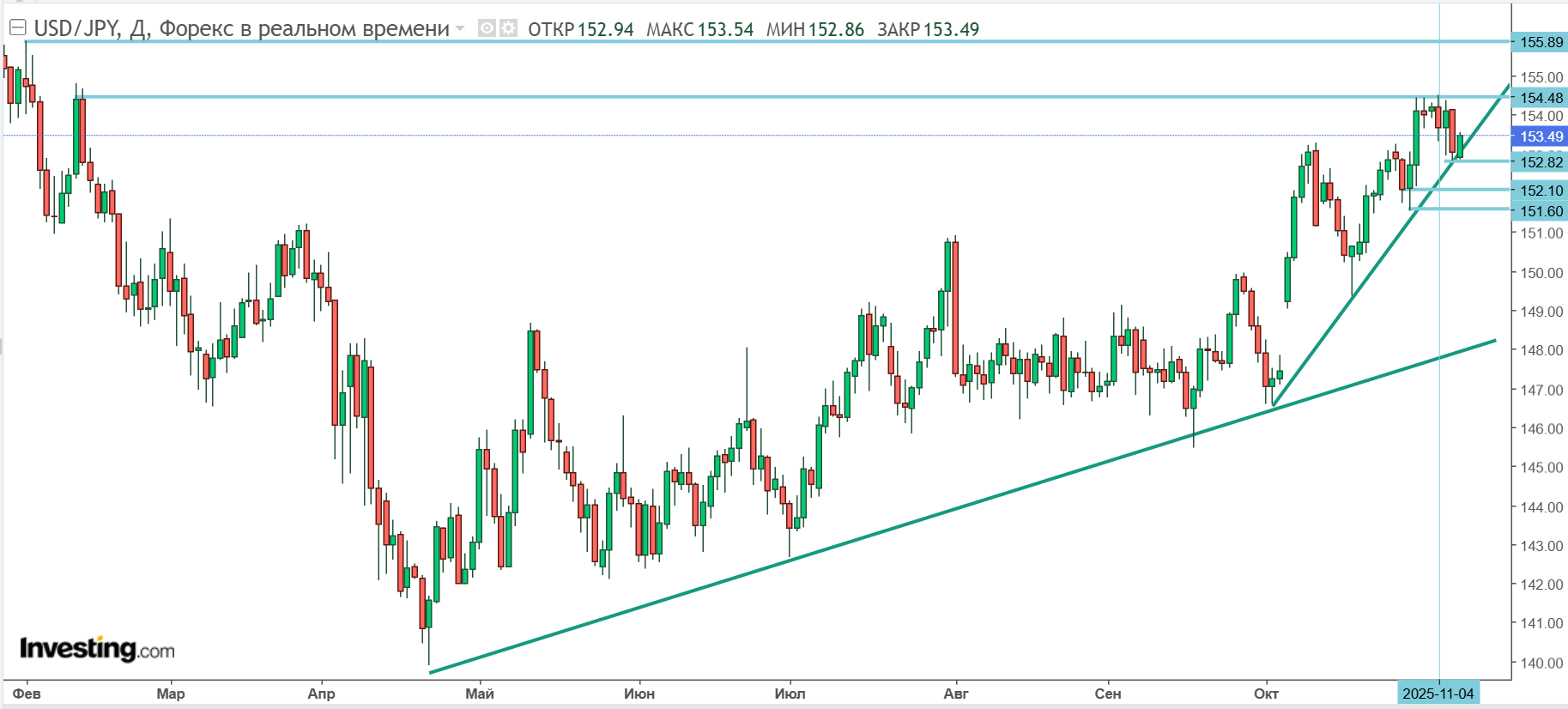 В ближайшие дни важными могут оказаться перспективы окончания шатдауна в США и судебного рассмотрения тарифов на импорт, инфляция в США 13 ноября, данные по ВВП Японии 17 ноября.
