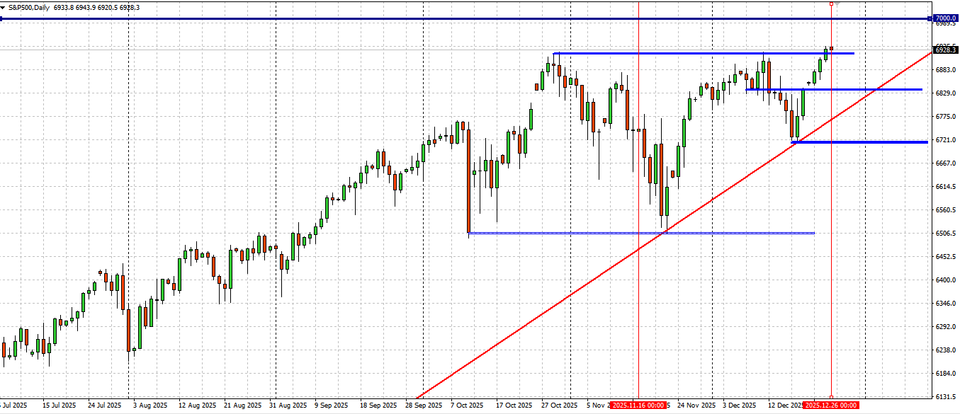 Ближайшая манящая цель – «круглые» 7000 пунктов. Но сейчас на завершении года и в начале января возможна фиксация прибыли, отступление вниз. В таком случае сильные рубежи поддержки – 6840 п. и 6720 п.