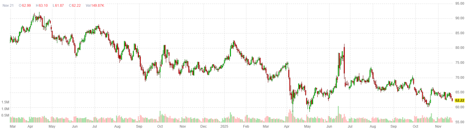 Рынок остаётся под давлением: США продвигают мирный план урегулирования конфликта, а в пятницу вступают в силу санкции против «Роснефти» и «Лукойла». Мирный план, который Украина официально получила от Вашингтона, был подготовлен США и Россией. Его предложения включают передачу части территорий и снятие санкций.