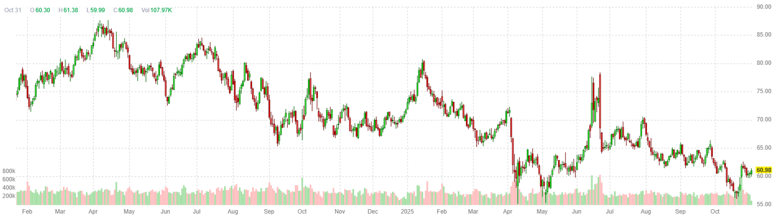 Несмотря на избыток сырой нефти, рынок нефтепродуктов демонстрирует устойчивость — особенно после введения санкций США против «Роснефти» и «Лукойла». Цены на дизельное топливо достигли максимальной премии к сырой нефти с начала 2024 года, что поддерживает маржу переработки и может стимулировать дополнительный спрос на нефть.