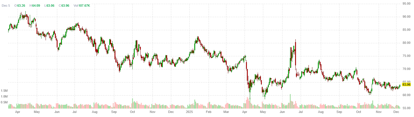 Рынок также оценивает возможное снижение ставок Федеральной резервной системы США и напряжённость вокруг Венесуэлы — оба фактора способны поддержать цены на нефть.