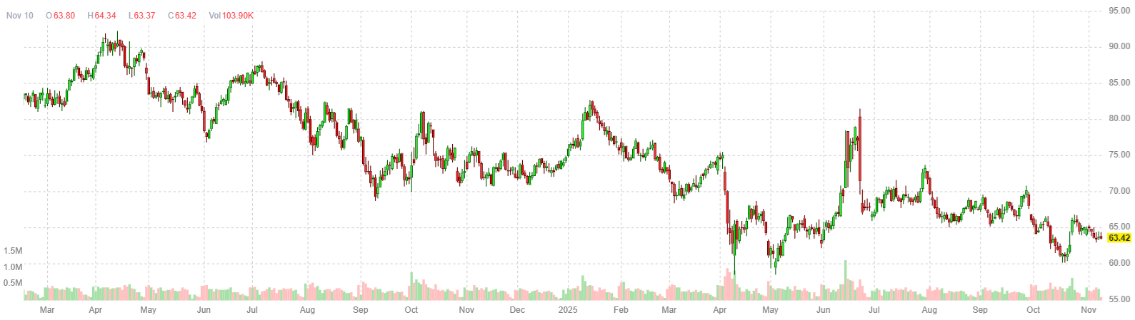 Нефть дешевела в пяти из шести последних недель — опасения по поводу избытка предложения усиливаются. Члены Организации стран — экспортеров нефти и её союзников (ОПЕК+) ослабляют ограничения на добычу, стремясь укрепить рыночные позиции, тогда как производители вне альянса, включая США, продолжают наращивать поставки.