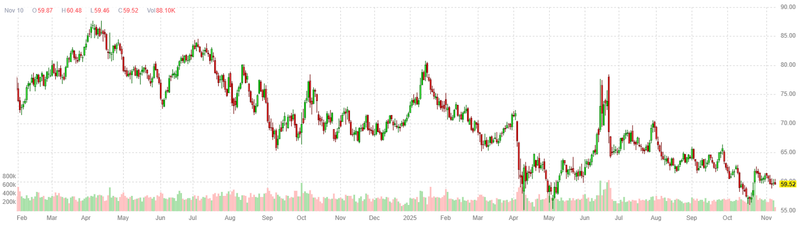 Цены на нефть демонстрируют умеренное снижение: первоначальный оптимизм, вызванный новостями о возможном завершении шатдауна в США, постепенно ослабевает. Участники рынка переключают внимание на насыщенную макроэкономическую неделю, которая может прояснить, формируется ли глобальный избыток предложения.