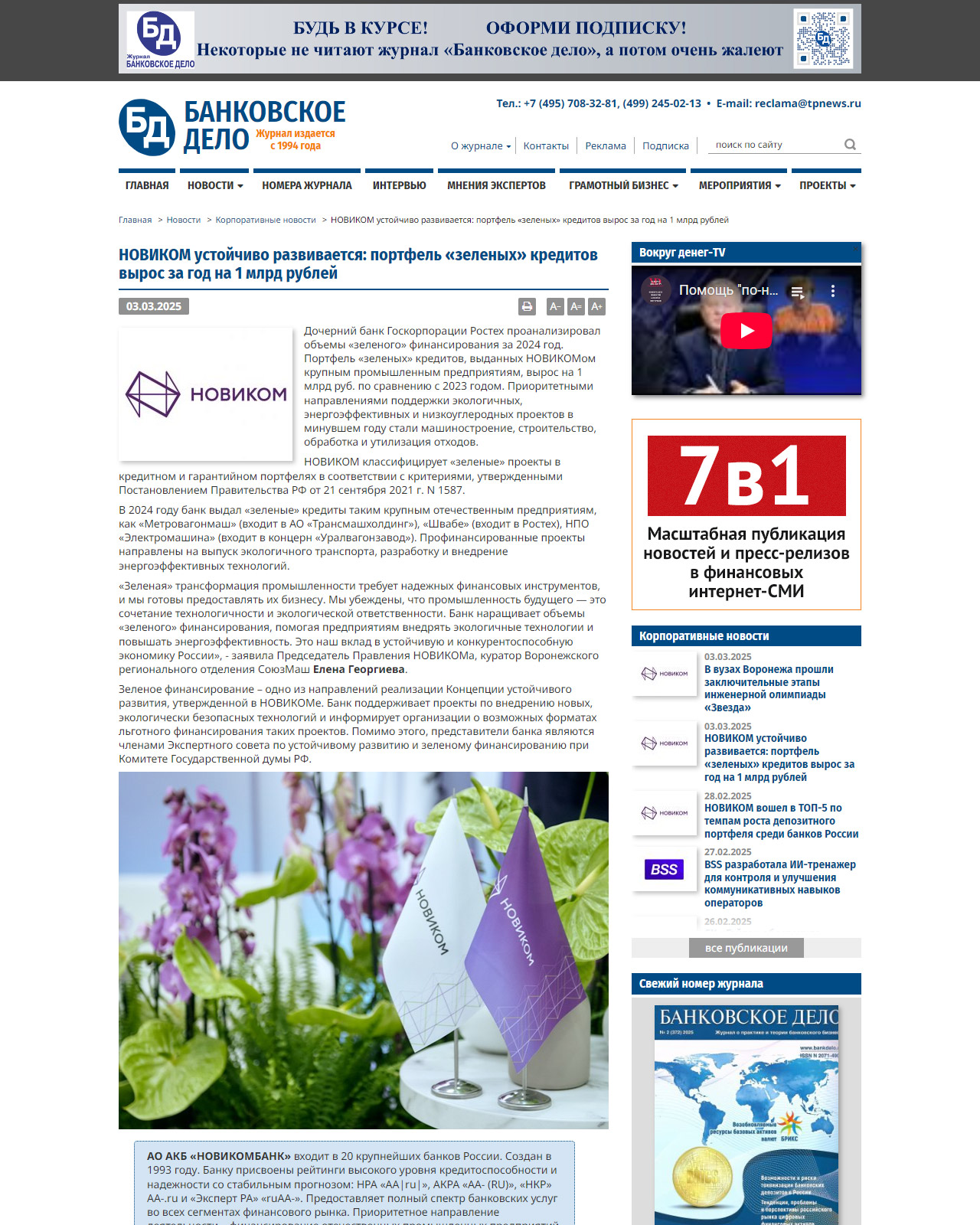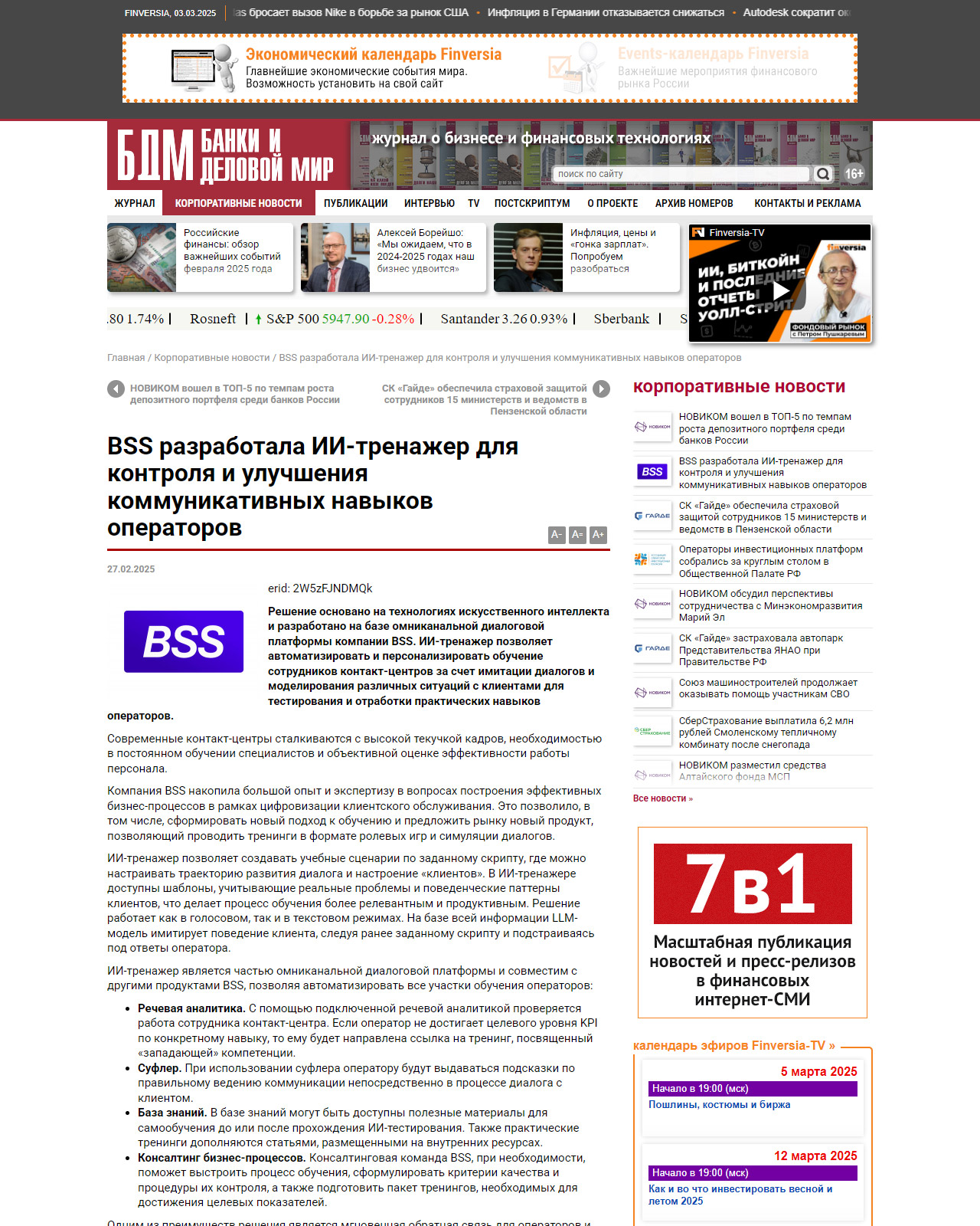 Сайт Банки и деловой мир – банковский интернет-ресурс с широкой экономической тематикой. С 2016 года проект реализуется в электронном формате в рамках холдинга Finversia. Аудитория: специалисты и руководители банков, IT-компаний и финансовых компаний.