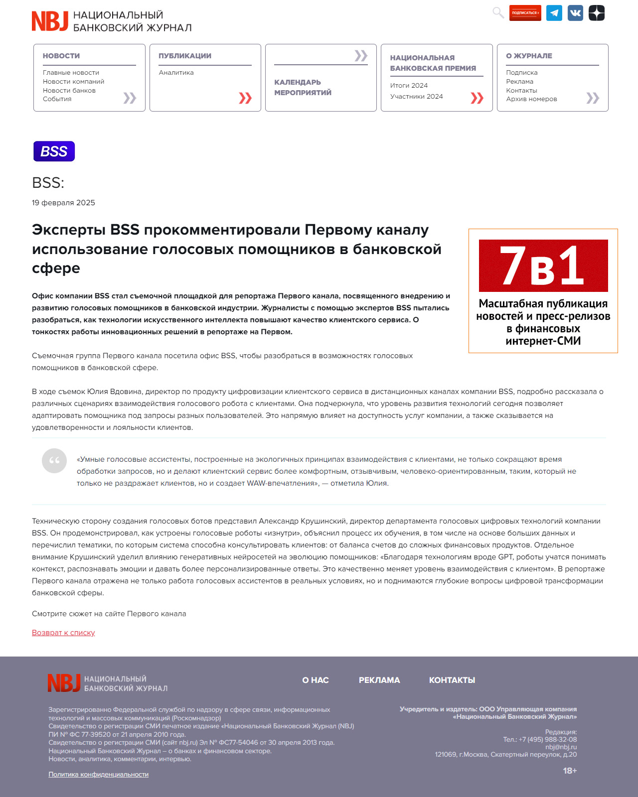 Сайт NBJ – профессиональный интернет-ресурс для банкиров и работников финансовых организаций. Аудитория: первые лица банков, руководители филиалов и структурных подразделений банков, специалисты банков, финансовые специалисты других отраслей экономики, руководители органов государственной власти.