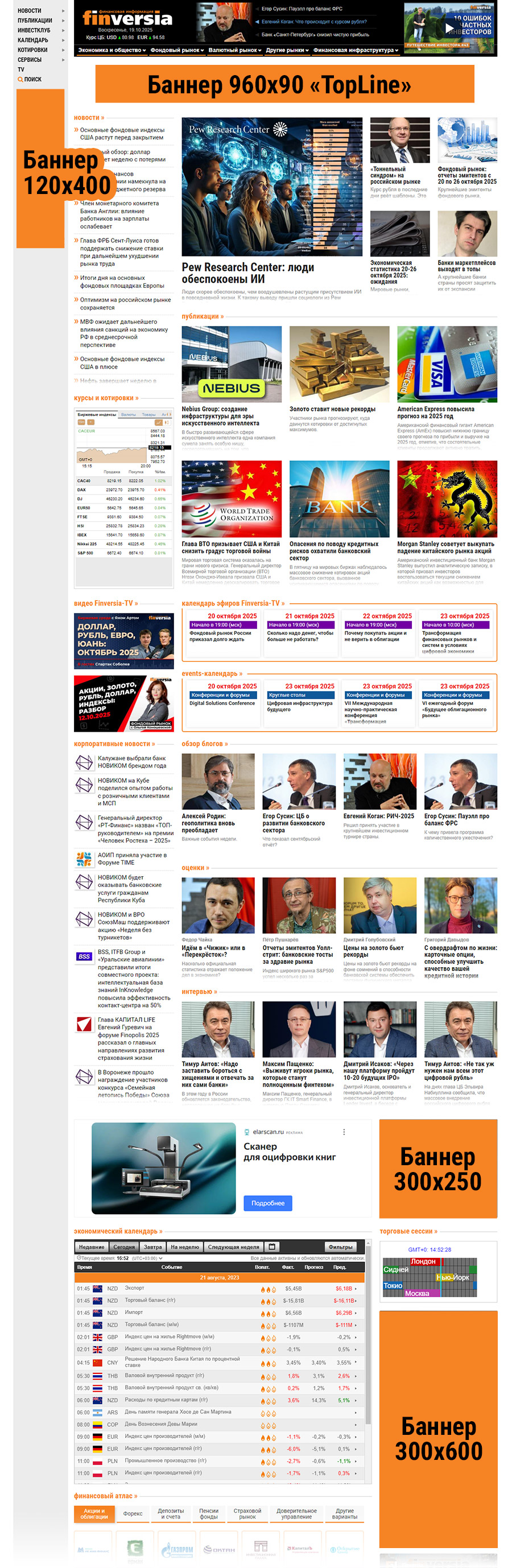 Портал Finversia предлагает широкий спектр рекламных и PR возможностей по созданию и публикации текстовых материалов. На выбор – несколько форматов: от небольших релизов до профессиональных интервью и статей, включающих видеоконтент. Наша основная аудитория – инвесторы, вкладчики, трейдеры, специалисты фондового рынка, банкинга и финансовой индустрии. В Finversia выступают ведущие эксперты финансового рынка, экономисты и аналитики, представители органов власти и регулирования, руководители профессиональных объединений финансового рынка, банков и компаний.