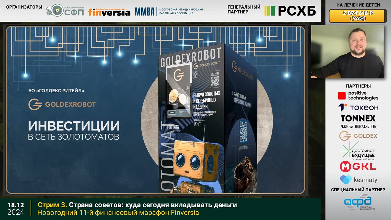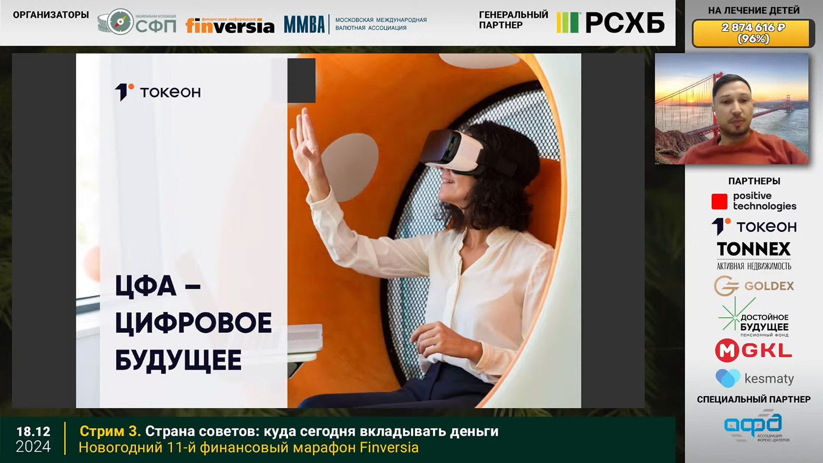 Сессия «Страна советов» адресована частным инвесторам. На этом стриме мы традиционно обсуждаем ситуацию и возможности по таким направлениям инвестиций и сбережений как драгоценные металлы (золото и серебро, прежде всего) банковские депозиты, вложения в недвижимость, вложения в разного рода инвестиционные инструменты (от классических биржевых до крауда и цифровых финансовых активов). Как правило, именно на этой сессии со своими версиями выступают ведущие инвестиционные и финансовые советники.