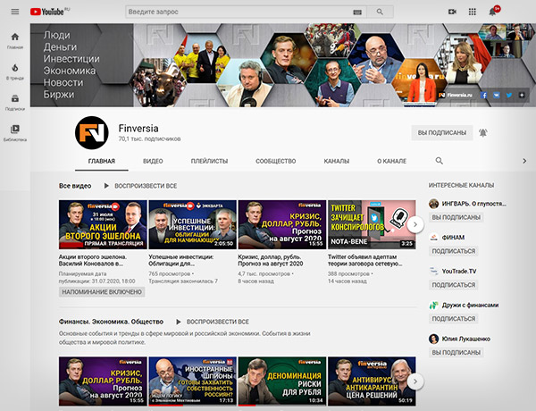 В настоящее время число подписчиков канала Finversia превышает 70 тысяч, а общее количество просмотров с момента открытия канала – около 8,5 миллиона.