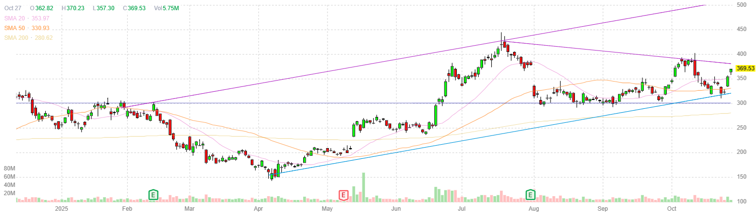 На момент написания статьи акции C выросли до уровня $100,69 (+1,93%), тогда как акции COIN подскочили до уровня $369,53 (+4,25%).