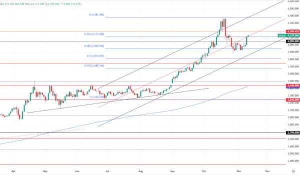 Reuters со ссылкой на опрошенных экспертов отмечает, что рост цены на золото было вновь обеспечено ожиданиями относительно дальнейшего смягчения ключа со стороны ФРС. Этот тезис под вопросом, так как если мы обратим внимание на оценку фьючерсов от CME Group, то обнаружим, что вероятность снижения ставки на 25 bp на последнем в текущем году заседании 10.12 опустилась до 63,4%. Напомним, что неделю назад эта вероятность была около 70%, а 07.11 – на уровне 67%. Определенности по данному вопросу пока что нет. Кроме этого, индекс доллара США после снижения в конце прошлой недели, стабилизировался и остается в настоящее время в пределах 99,7 (200-ая средняя располагается на уровне 100).