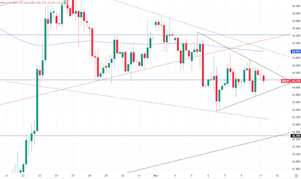 В понедельник цена на нефть марки Brent осталась на месте. Изменения на рынке минимальные, цена продолжает находиться в пределах $64,2/б.