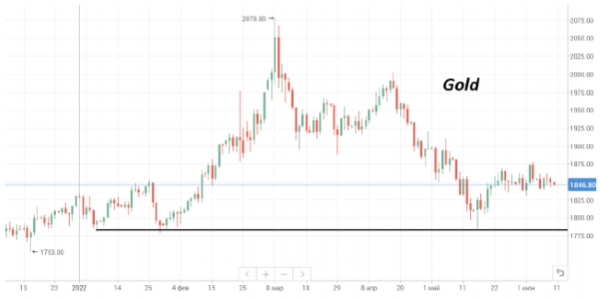 В последние две недели ценник на золото консолидируется в диапазоне 1830-1875 $/унц, поскольку схожую невнятную динамику в последние дни показывают индекс доллара и цены на гособлигации США. Прошедшее накануне заседание ЕЦБ не привело к каким-то радикальным изменениям на долговом и валютном рынках. ЕЦБ, как и ожидалось, подтвердил планы по осторожному повышению ставки в этом году, но эти ожидания уже ранее были заложены в рынок. Поэтому консолидация цен на драгметаллы может быть продолжена.