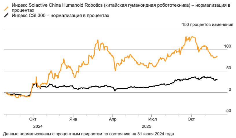 Этот фокус внимания подхлестнул интерес инвесторов к сектору, в результате чего индекс Solactive China Humanoid Robotics, отслеживающий акции робототехнических компаний, вырос почти на 30% в этом году.
