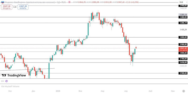 Индекс закрылся выше уровня 2800 пунктов. При закрытии выше 2900 пунктов возможен рост до 3000 пунктов.