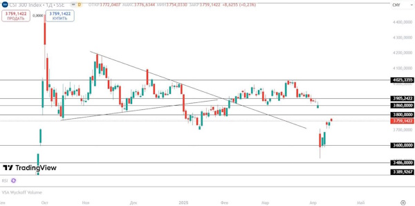 Рынок продолжает следить за ситуацией с внешнеторговыми пошлинами. В пятницу китайские власти объявили о введении 125% пошлины на весь импорт из США. Это последовало за решением Вашингтона установить тариф в 145% на китайские товары. Министерство финансов Китая заявило, что больше не будет реагировать на дальнейшие повышения тарифов со стороны США. Минторг отметил, что чрезмерно высокие пошлины превратились в "игру в числа", не имеющую практического значения для экономики.