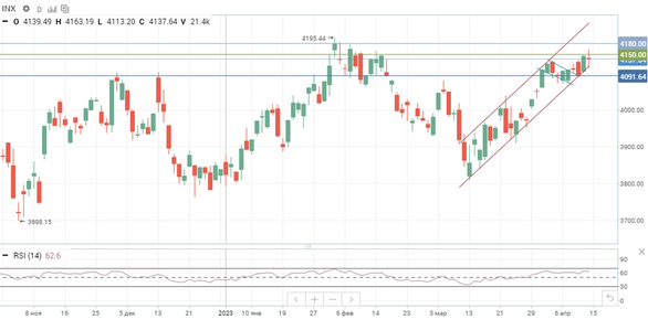 В понедельник, 17 апреля, на мировых рынках превалируют умеренно позитивные настроения. Поддержку рынкам оказывают надежды на скорое завершение цикла ужесточения монетарной политики ФРС, которые подкрепляются сигналами постепенного снижения инфляционного давления в Штатах. Однако оптимизм достаточно сдержанный, поскольку данные об ослаблении инфляции сопровождаются данными о замедлении американской экономики и неоднозначными высказываниями представителей Федрезерва по поводу перспектив ДКП. Так, член совета управляющих ФРС Кристофер Уоллер заявил, что регулятору следует продолжать повышение ключевой ставки, поскольку финансовые условия не стали существенно жестче, рынок труда остается сильным, а инфляция все еще намного превышает целевой уровень. Между тем определенный благоприятный фон для рынков создает неплохое начало сезона отчетностей в США. В частности, сильные результаты ведущих американских банков за I квартал указывают на то, что наблюдавшаяся в прошлом месяце банковская паника в стране не оказала существенного негативного влияния на лидеров сектора.