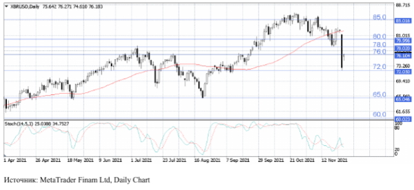 В прошлую пятницу цены на нефть упали более чем на 10%, что стало самым большим однодневным падением с апреля 2020 года, поскольку новый штамм коронавируса из южной Африки привел к глобальному risk-off. Инвесторы опасаются, что новый штамм может подорвать восстановление мировой экономики, потенциально снижая спрос на нефть, помимо этого усиливаются опасения, что в первом квартале может возникнуть избыток предложения «черного золота».