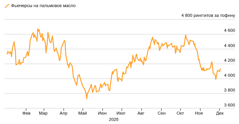 - Премия соевого масла над пальмовым составляет около $161/тонну против среднего ~$76 за последний год (данные Bloomberg)