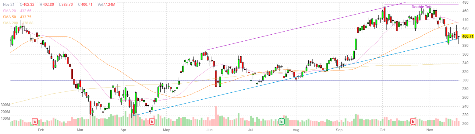 Hа момент подготовки материала акции TSLA котировались по $400.71 (+1,39%)