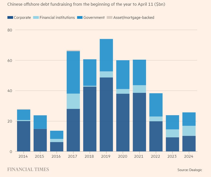 На международных рынках облигаций китайские компании, банки и государственные заемщики выпустили облигаций в этом году на сумму 26 млрд долл., что немного выше прошлогодних 24 млрд долл., но это самый низкий уровень с 2016 г. (см график выше). На материке объем заимствований в размере 246 млрд долл. вырос на 17% по сравнению с прошлым годом. «Что касается интереса глобальных инвесторов к Китаю, это определенно худшее, что я видел в своей карьере», – сказал Ван Ци, директор по инвестициям UBS в Гонконге Mandy Zhu, который начал работать в сфере финансов в 1990-х годах.