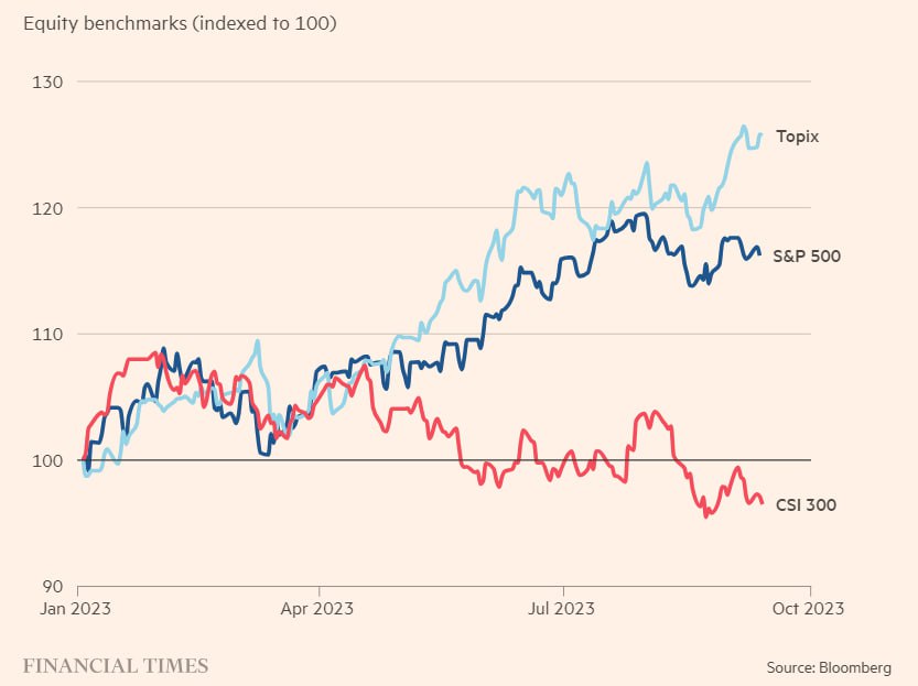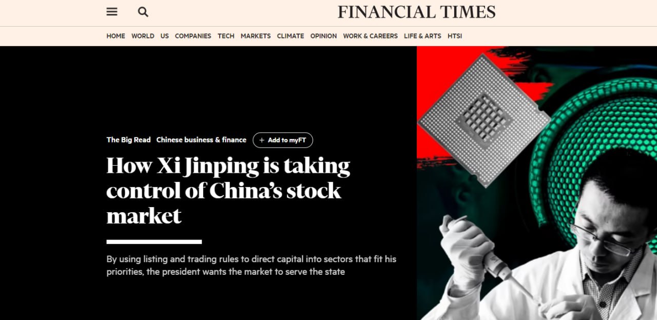 Негативна реакция на новый курс партии со стороны крупных иностранных инвесторов. Согласно расчетам Financial Times, основанным на данных фондовой биржи, в прошлом месяце оффшорные инвесторы, торгующие через мост между Гонконгом и материковыми биржами, продали китайские акции на рекордные 12 млрд долл. Управляющие фондами говорят, что страна находится в процессе структурного снижения рейтинга, в результате чего международные инвестиционные фонды постоянно сокращают долю капитала, которую они считают разумным направить на фондовый рынок Китая.