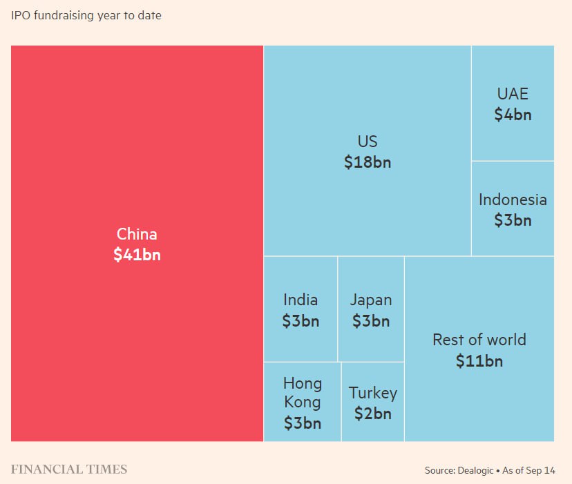 Да, меры крутые, поэтому лидерство Китая в секторе IPO в мире кажется вполне закономерным. Однако FT также рассматривает серьезные экономические риски столь агрессивной политики. Одна из основных проблем заключается в том, что поток новых листингов привел к падению стоимости существующих акций, поскольку отдельные инвесторы часто продают пакеты акций компаний, которые уже котируются на бирже, чтобы собрать деньги, необходимые для участия в торгах за акции новых эмитентов.